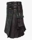 Black and Black Watch Tartan Hybrid Kilt is a masterpiece of our craftsmen that combines Scottish traditions with modernity. It is available in various tartan patterns and fabric colors, so you can make your look better by combining your favorite color and tartan pattern. Black and Black Watch Tartan Utility Kilt has a flat detachable apron that is made of Black Watch tartan. It has a pair of nylon straps on both sides connected with O-rings that hold the apron in its exact place. A lobster clasp is hanging with the help of a nylon strap on either side, allowing you to hang chains for a gothic appearance or the keys during your work routine. Large flap pockets are styled on both sides of a kilt, providing enough storage for your valuable items like a Cell phone, Wallet, and Keys. It has a pleated rear that provides ease of mobility during your outdoor activities and also shows your resemblance with the Highlander culture. Black and Black Watch Tartan Hybrid Kilt is crafted with 100 % pure material that makes it durable and also assures its longevity. It is suitable to wear on various occasions, whether it is a Casual party, a Scottish Wedding, or a Traditional festival; this kilt will capture everyone’s attention towards your unique dress. Order now to get this amazing kilt at an excellent price in various sizes.