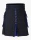 Black And Blue Hybrid Kilt With Detachable Pockets are specially designed to fulfill the needs of the modern lifestyle. It offers a unique and attractive look to the kilt with a lace design. This kilt comes with two-tone detachable pockets on both sides to save your items while you are at any events or functions. Pockets are designed with blue laces and eyelets to make an elegant look. Blue panels are sewn on the front and side of the kilt, which is decorated with blue laces and eyelets for an eye-catching look to the viewers. The traditional pleated designs are on the back and side of the kilt for freedom of movement. Black And Blue Hybrid Kilt has belt loops decorated with eyelets for holding the belt and making the waist fit. Detachable pockets are attached with a nickel clip and hang with a side D-ring. All the hardware material used in this kilt is rust-free. For hanging keys and chains, a D-ring is attached with belt loops. You can select your color combination on this kilt, which perfectly matches your personality. /p>