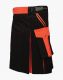 Black and Orange Utility Kilt is designed for the stylish man to meet comfort and current fashion needs. It is a modern kilt that elevates your personality with its charming look. Its outer area features a black color, while the pleats are made of orange. You have an option to select the contrast of your choice to make a fashion statement at any event. Black and Orange Hybrid Kilt has a flat apron with an orange cotton belt on its front waistline, delivering a fabulous design. An adjustable leather strap on both sides of the waistband area provides a better, more secure fit. It is also functional and possesses multiple pockets on either side of a kilt, like flap and trouser pockets. These pockets allow you to carry your personal belongings like Cell phones, wallets, and Keys. It has a pleated pattern on the back that shows its associations with Scottish culture. Black and Orange Kilt is fabricated with 100 % pure Cotton material. We offer this kilt cheaply to make it accessible for every budget. It is the fashionable and the perfect choice to wear at Casual parties, Wedding events, and Family gatherings. Order Now