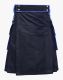 Black and Royal Blue Two-Tone Utility Kilt with Detachable Pockets is a modern designed kilt that offers a combination of style and utility features. It has an eye-catching outlook that makes it more valuable and a perfect choice for a variety of occasions. Black and Royal Blue Utility Kilt has a plain apron, while it comes with snap buttons on the front waistline for a perfect and comfortable fit. Its belt loops and the waistband area are adorned with royal blue, which makes it an ideal choice for modern people. D-rings are connected to each belt loop, allowing you to carry pockets and other lightweight items like keys and chains. Pockets are styled on both sides with the help of D-rings and nickel hooks. These pockets offer ample storage for your everyday essentials like a Cell phone, Wallet, and Keys. A pleated pattern is made around the back that helps in easy movement and also provides freedom of movement during your outdoor adventures. Black and Royal Blue Two-Tone Kilt is fabricated with exceptional-quality Cotton. All the hardware used during its fabrication is rust-free and of good quality that will last for years to come. You can wear it at Casual outings, Formal gatherings, and Special parties. Order now to get this handmade kilt at a reasonable price in various color combinations.