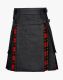 Black and Wallace Tartan Hybrid Kilt have a distinctive appearance reflecting cultural heritage and trendy fashion. It will allow you to blend two different fabrics to make a piece that will make you stand out. The use of denim makes you comfortable for the whole day. At the same time, the tartan shows the traditions and culture of the related Clan. It comes with black denim fabric on its outer part, while Wallace Tartan is used on its inner part. The front apron of the kilt is made of black denim. It has a pleated design of a tartan pattern on its back to give it a traditional look. It has four adjustable leather straps for the comfort and ease of the person. D- rings connected to the belt loops provide extra functionality. Two cargo pockets with a flap that each closes securely with two buttons store your gear. You can hold your wallet or cell phone with them when you go outside for an evening walk or while traveling.