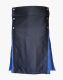 Black and Blue Hybrid Utility Kilt gives you a distinctive boldness and allows you to wear your colors modernly. It is designed with modern accents to meet the needs of fashion trends in a classic style. It has an attractive combination of fabric colors that will make you stand out from the crowd. It features a flat front while a pleated design on its rear and sides, allowing freedom of movement. Black and Blue Hybrid Kilt has black fabric on its outside part, while the inner pleats are made of blue fabric. On its front, buttons are adorned that look better. It has two spacious pockets allowing you to keep your belongings inside safely. It has belt loops, connecting a lobster clasp with a belt loop on its side. You can hang your keys during office work with it.