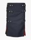 Black and Rainbow Pride Hybrid Kilt features a colorful combination of colors. Pleats of the men's Rainbow Kilt are fashioned with rainbow colors, while the exterior is black. The kilt is designed uniquely; it has 3 O-rings on either side of the kilt with fastening strips. These strips fasten a kilt with buttons on the front apron. The hardware material used is rust-free and enhances the kilts' elegance. Rainbow Pride hybrid Kilt has a lobster clasp to hang keys or detachable pockets. It has a simple front, but with the strips and button closure, it gives a fantastic look.