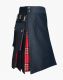 Black and Royal Stewart Tartan Hybrid Kilt with Detachable Pockets is designed traditionally. This Kilt is fabricated with 100 % black drill jeans fabric with Royal Stewart Tartan pleats. Two detachable pockets on either side of the Kilt give it a unique appearance. Royal Stewart Tartan pleats add a traditional touch with a simple front. This Kilt features leather straps on both sides for a comfortable fit. Pockets are hung with the D-rings, and the hardware material is rust-free. These D-rings, Pockets, and Leather straps give a modern edge to a kilt.
