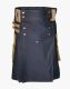 Black Utility Kilt is made up of two-tone fabrics, which give it a different look. The straps and Pockets designed are fantastic. The front is smooth and plain, having beautiful studs on it with white stitching. The rear pleats are well-way-sewn. A pocket is also on the left side of the rear, while a buttoned flap is on the right side. Black Utility Kilt has two cargo pockets on either side for your essentials. Straps are present on the right side, which are used to adjust the kilt’s waist. Beautiful Buckles make these straps awesome. Studs, buttons, and buckles look fantastic on fabric. You can use the loops for the belt with this men’s black kilt. We use premium-quality cotton to make kilts. Buttons, studs, and all decorative features are rust-free. Feel free and Order now.