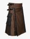 Brown and Black Hybrid Kilt with Leather Straps is a fabulous garment, creating a unique look that will surely capture everyone’s attention. It is the perfect choice for those who want a modern twist in their outfits, along with its utility features. It is handmade and available in various colors to meet the contemporary needs of individuals. Brown and Black Utility Kilt has a flat apron while a nylon strap is sewn on both edges. It comes with a pair of fastening straps on the waistline made of original leather and rust-free buckles. These straps are adjustable and provide a perfect and comfortable fit for the wearers. It comes with belt loops, and a D-ring is attached to each, allowing you to hang chains for a stylish appearance or to hang keys during your work routines. Large pockets are styled on either side of a kilt, providing enough storage for your valuable items like a Cell phone, Wallet, and Keys. A pleated pattern on the back allows you to move with ease and also shows your attachment to the Highlander culture. Brown and Black Utility Kilt is fashioned with exceptional quality cotton, ensuring its durability and comfort. It is lightweight and comes in various sizes at an excellent price. It would be a good choice to wear at Casual outings, Formal gatherings, and Special parties. Order now to add a distinctive garment to your wardrobe that provides both style and functionality.