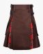 Brown and Royal Stewart Tartan Hybrid Kilt is a unique addition to our collection. It has a simple plain front made of drill jeans and cotton. The pleated design on the rear of the Kilt features a Royal Stewart Tartan. Leather straps on the waistband ensure a secure fit. In addition to straps, Kilt contains belt loops, which you can wear with a belt. Royal Stewart hybrid Kilt has all the elements any modern kilt should have. It has pockets on both sides, D-rings are also available, and rust-free customized buttons. Our handmade Brown kilt has an attractive contrast of both fabrics. If you want to go for a special occasion or a ceremony, try this stunning Kilt. This special Kilt makes you more glamorous than others. It is the symbol of the Royal Stewart Clan in a modern way.