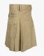 The Khaki utility kiltis a modern addition to this traditional garment. This classic kilt features a plain front apron, and the back side has a pleated design. Khaki utility kilt has cargo pockets on each side, giving you plenty of space to carry items. This Khaki kilt features button snaps and buckle stripes to achieve a comfortable fitting. Apart from khaki, our online store has a wide variety of colors. In buttons, we have four colors: silver chrome, antique brass, gold plated, and black matt. This khaki kilt is suitable for wearing at formal events or while having fun with friends. We use 100% pure cotton, which makes our kilts comfortable and long-lasting. In short, this utility kilt will be a perfect addition to your wardrobe. Order it now!