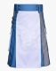 Grey and White Utility Hybrid Kilt with Grey Pleats is a stylish, modern garment that makes you look more stylish and eye-catching at all events and functions. Its color combination looks attractive and adds a modern twist to your outfits. Grey and White Utility Hybrid Kilt has a decent and simple plain white apron. In contrast, the gray and blue pleated pattern around the back and side of the kilt adds a touch to its trendy look and culture and allows free movement for the whole day. Snap buttons are used on the top front waist for kilt fastening. Loops are used on the top waist area to wear and hold belt. It has large blue flaps with white pockets on both sides of the kilt that allow you to carry your everyday essentials like cell phones, wallets, cards, coins, etc. Blue buckle straps with eyelets on the right side for kilt adjustment. Grey and White Utility Hybrid Kilt with Grey Pleats is fabricated with pure cotton fabric with rust-free hardware hardware material. We always deliver top-quality products that satisfy our customers' needs at a reasonable price. Whether you are attending a Scottish Wedding, sports functions, or a Casual party, this kilt will be a good choice. So don't hesitate. Order it now and get this kilt in your desired sizes and color combination.