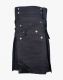 Heavy duty denim kilt is made up of pure denim jeans fabric. This fabric quality is excellent and useful for long-term use. The front side of the kilt is very stylish and decorated with buttons. A stylish leather strap with small studs on the front of the kilt at the bottom looks attractive and unique. The back and side are in pleated design. This pleated design is helpful for movement and comfortable in daily tough jobs. One extra design in this kilt is one big denim strap on the side of the kilt. This strap is joined with the front button, which is fashionable. There are two leather straps with buckles and studs on the backside of the kilt. This strap is attached to the side of the denim strap. Heavy denim kilts have one flap pocket on the left side of the kilt to hold all your essentials. A belt loop is used to adjust the belt easily.