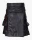 Lautreamont Black Leather Kilt is an innovative garment that offers a fashionable outlook and functional elements. It looks amazing and is the perfect choice for those who want to make their upcoming occasions special with the addition of a luxurious twist to their unique personality. It comes with a customization option, so you can purchase this kilt according to your specifications. Black Leather Utility Kilt is sewn in a fantastic pattern with a plain front apron. It has leather straps styled on both sides of the waistline area, providing a better and more secure fit for the whole day's wear. It comes with D-rings that are connected with each belt loop for external attachments. Large flap pockets are made on both sides of the kilt, allowing you to stow your valuable items like a Cell phone, Wallet, and Keys. It has a pleated rear, showing your resemblance to the Highlander culture, and also provides freedom of movement during your tough adventures. Lautreamont Black Leather Kilt is fabricated with 100 % pure leather, making it durable and ensuring its longevity that will last for years to come. It is suitable to wear at Casual outings, Wedding ceremonies, and Formal meetings. Order now to get this kilt at a reasonable price in your exact size.