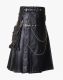 Men's Black Fashion Leather Gothic kilt looks stylish and attractive due to its hardware material and styling. It is perfect for fashion and modern kilt lovers who want to express their personality in a trendy way. The kilt has a customization option, allowing you to select the fabric color and sizes. Black Fashion Leather Kilt is designed in a unique, flat, plain front apron style. D-ring straps are sewn on both sides of the front pleats for a classy look. Silver chains are attached and hung on the front apron with this D-ring, making them look fashionable and stylish. Detachable pockets are on both sides that are connected with a fish hook and carry your valuable items like cell phones, wallets, cards, etc. Pleated designs are sewn on either side, giving freedom of movement at all outdoor events and functions. Below the waist, a pair of leather straps is attached with a fish hook on the front apron for kilt fastening and adjustment through buttons. Men's Black Fashion Leather Gothic Kilt is fashioned with top-quality pure leather and rust-free hardware, making it durable and ensuring its longevity. It is an ideal choice for Casual outings, Formal gatherings, and Special parties. Order now to buy this fantastic kilt at an affordable price.