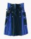 Men's Black and Blue Utility Kilt is modern and stylish. The kilt comes in two-tone colors, black and blue, giving an elegant look. In black kilt the front side of the kilt is a plain apron in black color with the decoration of studs. The back and side are in a pleated design in blue color. These pleated designs provide comfort and freedom of movement in daily tough jobs. There are two cargo-size flap pockets in black and blue color with buttons. The flap and coin pocket is black, giving an attractive look. The best thing is that the pockets are detachable, which gives a personalized look. Two cotton straps are decorated with buckles and eyelets in the blue utility kilt. This strap is used to adjust the kilt to 1'2". This kilt belt loop is used to fasten the belt easily. Men's black blue utility kilt is made with pure 100% drill jean material. The quality of this kilt material is premium which makes the kilt durable. We also offer the customize option. You can wear this kilt as a modern or casual dress on different occasions. If you are looking for the best kilt at a reasonable price, then this platform is for you, so place your order.