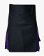 Men's Black Purple Hybrid Kilt features two colors of fabric made from a pure Cotton material. Its material ensures durability enough for sporting events. It has a purple pleated design on its rear that adds a traditional touch. While the outer layer and its plain front have a black fabric. It has V-shaped loops with D-rings. It also comes with flapped side pockets that are used to store some personal accessories.