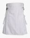 Men’s White Utility Kilt is a combination of traditional and modern design. The main feature of this kilt is that it has leather straps to adjust the waist size. The front apron is the primary element of the kilt's beautiful appearance and style. Flapped big pockets give ample space to the wearer for essentials. The kilt is often worn as an alternative to pants, offering comfort and versatility for various activities. Buttons, eyelets, and D rings look perfect on this kilt. White Utility Kilt made by our company has premium quality material. The kilt’s pure cotton material is long-lasting and flexible. You can use these kilts at events, parties, and casual days. Buttons, eyelets, and studs are rust-free. You can customize the hardware by choosing any color from our four options. We don’t compromise on quality and sell this kilt at a discounted price. Buy now your white kilt and enjoy.
