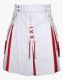 Men's Christmas White and Red Kilt is a fantastic Scottish modern garment that blends traditions with a unique style and functional elements. It is versatile, so you can pair it with any of your outfits to make a fashion statement at your Christmas events and New Year's functions. It comes with handmade features, so you will get a new kilt designed according to your preferences. Red thread is used to give the viewers a finishing and eye-catching look. Christmas White and Red Kilt is designed in a great color combination of white and red. It is styled red with an attractive front apron, while the red pleated pattern on the back provides ease of mobility for the whole day. Laces are styled on the front, back, pockets, and sides, showing viewers a great look and eye-catching view. Belt loops and D-rings are connected, which makes it more functional. Detachable flap pockets are styled on both sides of a kilt by which you can carry your daily used items like a Cell phone, Wallet, and Keys. The men's Christmas White and Red Kilt is fabricated with top-quality pure cotton fabric. It has fine stitching and is available in various sizes at an affordable price. Order it now.