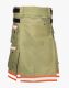 Men Khaki Bunker Gear Firefighter Kilt with Pockets has a fantastic new design kilt to represent your individuality with the firefighters. It adds a modern twist to your dress and personality, allowing you to celebrate your events and functions uniquely. You can get this kilt in various sizes and colours at an affordable price, so you can select the one that matches your taste. Men Khaki Bunker Gear Kilt has an attractive and straightforward plain front apron with a stylish reflective tape design on the bottom side. To add a touch of traditional design, a pleated pattern is made on the back and side, which also helps in freedom of movement for the whole day and complements the Highlander design. A lobster clasp is attached with front loops for hanging lightweight items like keys and chains. Double flap pockets are styled on both sides for storing your belongings like cell phones, wallets and cards. Pure 100% leather straps are used for kilt fastening and adjustment. Men Khaki Bunker Gear Firefighter Kilt with Pockets is manufactured with pure drill jeans cotton fabric, which is durable and washable. This kilt is the perfect option to wear at various traditional and cultural events to show love to the firefighters. So don't be late. Order it now and get this versatile kilt at your doorstep.
