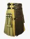 Men's Khaki Gothic Hybrid Kilt is a newly designed kilt that is a fabulous choice for a trendy man. It gives you a distinctive boldness and fashion appeal at any event where you choose to go. It is available in various cotton and leather combination colours, which make it a perfect pair with your favourite outfits. Khaki Gothic Hybrid Kilt is specially designed with the gothic look of the detachable flat front leather apron. At the same time, the traditional khaki pleated pattern on the rear helps you move easily. It has snap buttons on the front waistline that look attractive and provide a perfect and secure fit. Three nylon button straps are sewn on both sides of the front apron and attached with side o-rings for a gothic look and fastening front apron. Lobster hooks are attached with a side loop with silver chains hanging on the front apron for a modern and stylish look. Mens Khaki Gothic Hybrid Kilt is fabricated with top 100% cotton and leather fabric, which is durable and comfortable for long use. You can wear this kilt to casual and formal events and daily routines. The hardware material used in this kilt is rust-free. We offer this kilt at an affordable price in various sizes, so don't worry about the size. It is handmade, and you will get a kilt according to your preferences. So order now to buy this kilt.