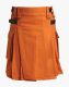 Men's Saffron Tartan Utility Kilt comes with a simple flat apron. It has two adjustable leather straps on both sides of the waistband area, allowing wearers to have a perfect fit. Large cargo pockets on both sides of the kilt provide enough storage for your everyday essentials and keep them safe due to the snap closure. To make it more functional, D-rings are connected to each of the belt loops for attaching lightweight items during your work routine. It has a pleated pattern on the back that makes your movement easy and resembles a rich Scottish culture.