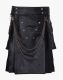 Modern Black Leather Utility Kilt with Detachable Pockets is a perfect versatile garment for expressing your unique personality and making a bold statement at any event. It has a distinctive style, is decorated with rust-free hardware materials, and leaves a lasting impression that captures everyone’s attention.