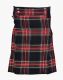 Modern Black Stewart Tartan Utility Kilt is a classy tartan design kilt that adds a lasting impression to your personality. It represents the contemporary and traditional invention of timeless design to your kilt collection. It features a dark combination of colors, which gives it a fantastic look. Black is its primary color, while the combination of blue, green, white, yellow, and red contrasts with its primary black color and makes a square pattern. Black Stewart Tartan Utility Kilt has an attractive chequered pattern with a plain front apron, giving a decent look. It has pleats on its back and side, allowing you to move freely and giving a traditional look. Large pockets on the rear side will enable you to carry essentials like Cell phones, Wallets, and Keys during your activities. These pockets also secure your essentials with the help of a button flap. It comes with adjustable leather straps, which gives wearers a perfect and secure fit. Belt loops are designed on the waist to hold the belt quickly and comfortably. Modern Black Stewart Tartan Utility Kilt is crafted with pure quality acrylic wool fabric and rust-free hardware. It is available in all sizes at a fair-minded price. You can wear it to traditional Scottish festivals, wedding functions, and casual parties. Order now to get a handmade kilt with a fashion-forward design.