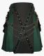 Modern Black with Green Gothic Utility Kilt is a modern and fashionable kilt garment that adds a unique blend of style and functionality to your kilt. This kilt offers functional elements and a gothic style that looks attractive and fashionable. Mostly, the kilt is green, while a black decorated front apron makes it an eye-catching piece of Scottish attire. Cross nylon straps decorated with rivet buttons and buckle on the apron make the kilt more stylish and classy. Nickel hooks are connected with side O-rings for fastening the apron. Black with Green Gothic Utility Kilt comes with double flap pockets on both sides with button flaps and enough storage for your daily used items like cell phones, wallets, and keys. It has a green pleated pattern on the side and back, allowing you to move quickly and adding a traditional touch to your outfits. The kilt has stylish silver chains on the front to make the kilt more fashionable and modern. Modern Black with Green Gothic Utility Kilt is newly manufactured with 100% top-quality cotton, making it durable and ensuring its longevity. It is available in various sizes and color combinations at an affordable price, so anyone can easily buy it. It is the best deal for Casual outings, Formal gatherings, and Special parties. Order it now.