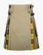 Modern Khaki And Macleod Of Lewis Hybrid Kilt is specially designed for those people who need some modernity and style in their kilt. This kilt is made with durable drill jeans cotton material, which is comfortable and easy to wear occasionally. Macleod Of Lewis Hybrid Kilt has a beautiful plain front apron. At the same time, the traditional tartan pleated designs are stitched on the back and side of the kilt for easy and comfortable movement.