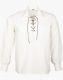Off White Jacobite Ghillie Kilt Shirt is a comfy and handsome addition to any mans Scottish outfits. It is lightweight and adds a finishing touch to the Highland dress. It features an open collar with a short neck area and long sleeves. The neckline is laced up with the drawstring in an incredible style through metal eyelets. The color of the Ghillie Shirt is great too and is specially designed for the kilt. Cuffs come with two matching buttons. So you have an option to fold the sleeves or simply fasten the cuffs for a casual look.