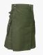 Olive green utility kilt manufactured with durable and high-quality cotton fabric. The front apron is plain and looks gorgeous in olive green color. Two flapped cargo pockets are present on either side for your small belongings. Two buckle straps are present on the right side of the olive green kilt to adjust the kilt size. You can also add a belt on the waistband for everyday use. The rear pleats are sewn traditionally and give a comfortable swing. Olive green utility kilt hardware is valuable and rust-free. We provide four choices for hardware color. Our classic kilts are custom-made and are of premium quality. If you are looking for a classic kilt, this kilt is for you. So order now and enjoy this utility kilt.