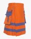 Orange and Blue Utility Kilt is an attractive and modern kilt. This kilt has a unique design with two-tone double fabric colors. The front side of the kilt is plain. Pleated Style on the back and side of the kilt. This pleated Style makes moving easier in tough daily jobs or the working area. Two tone-flapped pockets are detachable. Flapped pockets are attached with a nickel clip and joined with a D-ring. This flapped pocket is perfect for carrying all your essentials. You can wear this kilt to outdoor activities such as jogging and hiking. You detach your pocket and use it as a casual dress. In this kilt, a belt loop is used to hold the belt. The D-ring is attached with a belt loop, making the kilt more attractive. This kilt is made with a pure cotton material in drill jeans fabric. The material of this kilt is of premium quality, which makes it durable for long-term usage. We offer you an authentic orange kilt at a low price so you can save significant money. Place your order now.