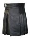 Original Black Leather Kilt is made of high-quality cow leather material. This kilt comes with shiny black leather, which gives the warrior a look. The feathers in the black leather kilt are very simple and attractive. The front side of the kilt is a plain apron, so the shiny black leather is quite visible and gives a shimmering look. Men's black leather kilt have pleated designs from the back and side of the kilt. These pleated designs are sewn in full depth and make a classic look. These pleated designs make moving in daily tough jobs or working areas easy. Black leather kilt have leather straps like a belt on the waist. A large buckle with eyelets is used on this strap to adjust the kilt for 1'2" inches.