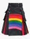 Pride Rainbow Hybrid Kilt is a versatile custom garment that adds a modern and stylish look to your personality and wardrobe. This kilt gives an eye-catching look due to its colorful design. It is handmade, and you can get a kilt of any size that accurately fits your body. LGBT Hybrid Kilt features an attractive black front apron with rainbow-colored straps on the front that give it a stylish look. The color pleated panels sewn on the back and side of the kilt highlights your resemblance with the highlander culture and helps provide easy movement. It comes with snap buttons on the top front waist for kilt fastening. Large flap pockets are styled on both sides, giving enough storage for valuable items like a cell phone, wallet, and keys. This kilt is the perfect option for casual outings, formal meetings, special occasions, and outdoor activities. Pride Rainbow Hybrid Kilt is newly manufactured with 100% pure drill jeans cotton fabric with rust-free hardware material. Its fabric and material quality ensures its durability and longevity. We provide an elegant kilt to our customers at a fair-minded price. So order it now.