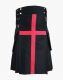 Scottish Black Cotton with Red Cross Utility Kilt comes with a traditional style and expresses your unique personality with a modern design to make you look special at family gatherings. This kilt is crafted with pure cotton fabric, which is durable. It is made in a light weight which you can wear for various casual, formal, wedding and traditional functions. Black Cotton with Red Cross Utility Kilt has features of a red cross to make the kilt more attractive with their color combination. At the same time, pleats are styled on either side for freedom of movement. It has cargo pockets on both sides to store your essentials safely with the help of a snap button. A nickel clip is used on the right side for kilt adjustment. Rust-free silver chains are hung on the back side below the waist for an eye-catching look to the viewers. The D-ring and lobster clasp are attached to the loops for hanging small items like keys and chains. Belt loops are styled with eyelets for an attractive look and make the waist accurately fit. Scottish Black Cotton with Red Cross Utility Kilt is easily available in your demanding size and colors, which match your personality. Our main aim is to provide an elegant quality kilt at a fair-minded price. So order now and add a unique Scottish flair to your wardrobe.