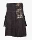 Scottish Black Pleated Utility Kilt with Leather Pockets has a bold and royal design that expresses your personality with a new look at various functions. It is designed for a luxury look that adds charm to your dress and makes an eye-chachi look. This kilt has the functionality of large leather pockets on either side. These pockets provide ample space for your belongings and save your items with the help of silver buckles. Two leather straps with rivets buttons on the top waist for a classy look. Scottish Black Pleated Utility Kilt is sewn in a stylish design. A pleated style is all around the kilt, adding a traditional touch to its modern design and helping with easy movement on all occasions. It has a fish hook with leather buckle straps on the left side for a better fit and kilt adjustment. Black leather belts on both sides and attached to the back O-ring make the kilt more attractive and fashionable. Scottish Black Pleated Utility Kilt with Leather Pockets is fashioned with 100 % pure leather fabric. It is available in all sizes at a fair-minded price to our lovely customers. It is an ideal choice for Irish and Scottish weddings, Ceremonies, Family gatherings, and Casual parties. Order it now.