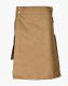 Scottish Khaki Utility Kilt with Large Pockets is a newly designed garment that combines functional elements, unique style, and a fashionable look. It is also a perfect choice to add a modern twist to outfits, whether you are at sports events, outdoor functions, or casual parties. This kilt is available in various colour combinations to wear a kilt of your choice. Khaki Utility Kilt is styled classically in that its front apron is simple and plain. At the same time, a traditional pleated pattern is made around the back, which helps with easy movement for various functions. It has snap closures on the front waistline for a perfect and comfortable fit. The lobster clasp is attached to the loops, giving it a fantastic design, and also allows you to hang your small items during your work. It has detachable pockets on either side of a kilt that hangs with the help of D-rings and lobster clasps, offering enough storage for your belongings like a cell phone, wallet, and keys. Scottish Khaki Utility Kilt with Large Pockets is fabricated with 100 % pure drill jeans Cotton fabric, which is durable and washable. It is handmade, and we offer it in various sizes at a reasonable price to make it accessible for every budget. Order it now to get this kilt on your doorstep in a few days.