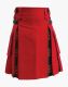 Scottish Lautreamont Red and Black Stewart Hybrid Kilt is a versatile addition suitable for modern men who look unique and eye-catching in the crowd or at a family gathering. This kilt has utility features of large pockets on both sides for carrying your gadgets like cell phones, cards, wallets, etc. The flap button is used for securing your item safely on various occasions. Two black leather straps are used on both sides to fasten and adjust the kilt. The D-ring is attached to the belt loops for hanging keys, chains, or other small items.