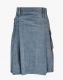 Sky blue denim kilt is a custom-made traditional Scottish kilt. This kilt is manufactured with 100% pure heavy-duty denim fabric, which is helpful for a long time. In this kilt, the front side of the kilt is a simple plain apron, and pleated designs are on the back and side of the kilt. This pleated design looks like a highland dress and makes an elegant look that is easy to move and comfortable in daily tough jobs. Sky Blue Denim kilt has two flapped pockets with a small coin pocket and button. This beautiful pocket helps you store various items for everyday use. One flap with a button on the back makes the kilt more attractive and traditional. There are two denim straps with buckles and eyelets. You can adjust the kilt for 1 '2'’ inches through these denim straps. The belt loop is sewn on the waist of the kilt, which purpose is to fasten the belt easily.
