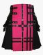 Stylish Black and Pink Gothic Utility Kilt is a versatile garment that comes in a perfect blend of modernity and functional elements. Overall, the kilt is black, while the pink apron makes it more attractive and adds a contemporary twist to your outfits with hardware style. We also offer a customization option, so you will get a kilt in your perfect size and desired colors at an affordable price. Black and Pink Utility Kilt has a flat detachable apron that is decorated with various nylon straps and hardware materials like O-rings, nickel hooks, and button straps. It has three nylon straps on either side that hold the apron perfectly. They are also connected with the help of O-rings. A lobster clasp is hanging with the help of a nylon strap by which you can attach chains and other lightweight items like keys. It has cargo packets that allow you to stow your everyday essentials like a Cell phone, Wallet, and Keys. A pleated pattern is made on the back, which provides ease of mobility and adds a classic twist to your outfits. Black and Pink Gothic Kilt is fashioned with 100 % pure Cotton material, ensuring its comfort and durability. It is handmade, and our artisans prepare it with years of experience and excellent skills. You can wear it at Irish and Scottish weddings, Casual outings, Formal meetings, and Special parties. Order now to get a kilt that adds a trendy twist to your outfits.