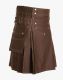 Stylish Brown Utility Kilt is a fantastic Scottish garment that elevates your individuality and provides comfort for long-day use. It is a good choice to wear at various occasions like Family gatherings, Casual outings, and Scottish weddings. Stylish Brown Utility Kilt has a flat apron with decorative studs for a modern look. On the top front, it has snap buttons that give you a perfect and secure fit. Two buckle straps are also designed below the waistline area, providing a little adjustment. It comes with flap pockets that offer ample space for everyday essentials like Cell phones, wallets, and Keys. These pockets have button flaps that also secure your essentials from being lost. It has a pleated rear that adds a classic look to its fashionable design. Stylish Brown Utility Kilt is fabricated with top-quality cotton material, ensuring its durability and longevity. We always deliver handmade quality products that satisfy the customer’s requirements. We offer it at a reasonable price in various sizes. Order now to add a distinctive twist to your dressing.