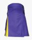 Women Blue Yellow Hybrid Kilt has a contemporary combination of colors and is designed with functionality in mind. It has all the features of the modern trends of today's fashion. It comes with deep cargo pockets with yellow flaps that provide enough storage for personal belongings. It also comes with D-rings used for external attachments and hanging keys. Overall this women's Kilt has blue. The front of the Blue Kilt is simply flat made with blue fabric. The pleated design on the rear and sides is made up of yellow fabric. Blue and Yellow Kilt features original leather straps on both sides. These straps ensure a perfect fit for the wearer.