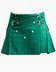 Women's Sea Green Short Utility Kilt Skirt is a functional kilt providing a glossy and modern look. It is an eye-catcher kilt for women who want trendy costumes. Its simple front apron is decorated with studs adding elegance to the Kilt's beauty. This Kilt has a pleated design on the rear that resembles the traditional style. It has flapped pockets which store your personal belongings safely inside. It has an additional feature of lobster clasps on the front to hang chains and keys. To fasten a kilt perfectly, it has four buttons on the waistband.